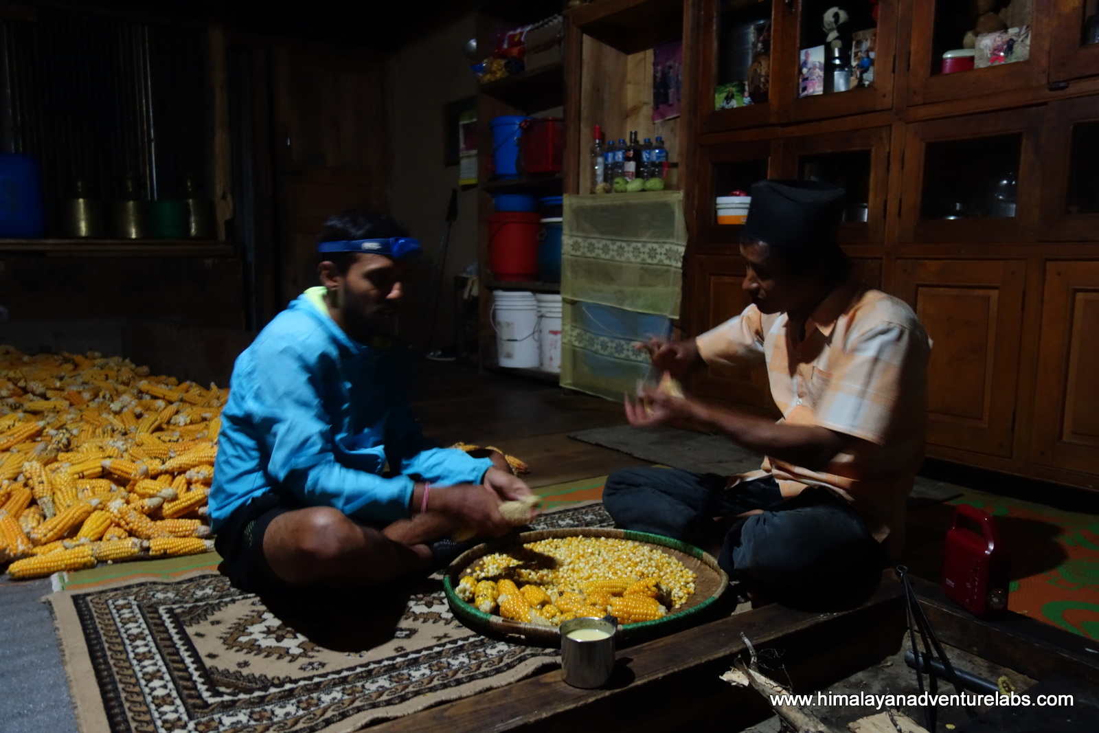 We stop in a small shop and luck out with hot food. Sudeep demonstrates his de-corning technique (rub one ear against another)