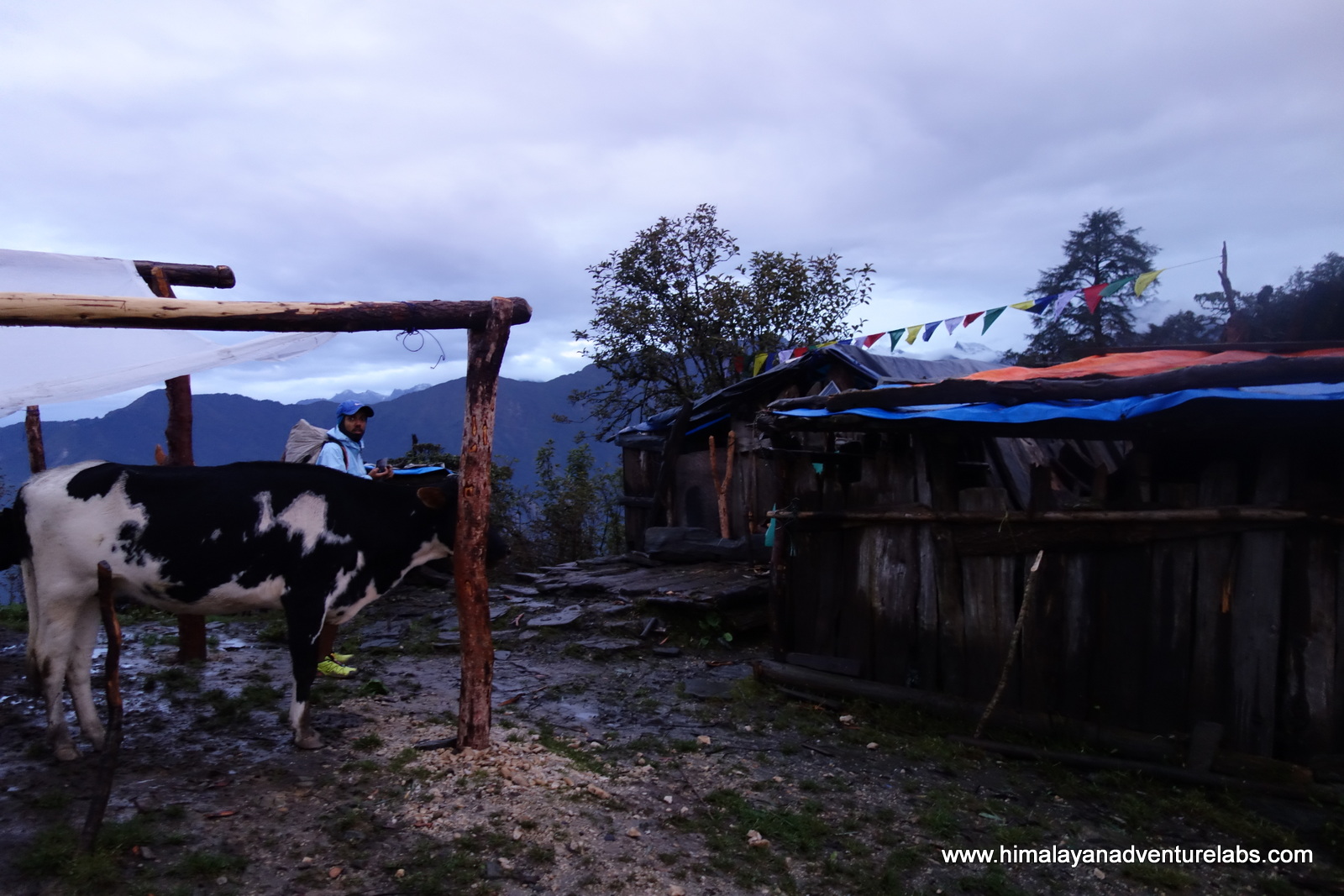 We luck out on our second night and shelter in a cow herder’s hut just as the rain started coming down – above Tarkeghyang