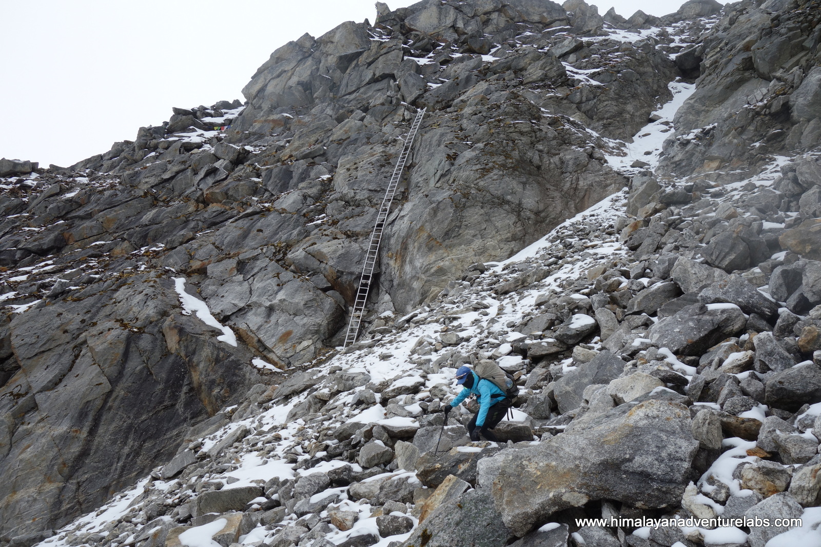 Yes – that is the ladder we skipped. The pass is just up to the left. It gave me flashbacks from the Khumbu Icefall